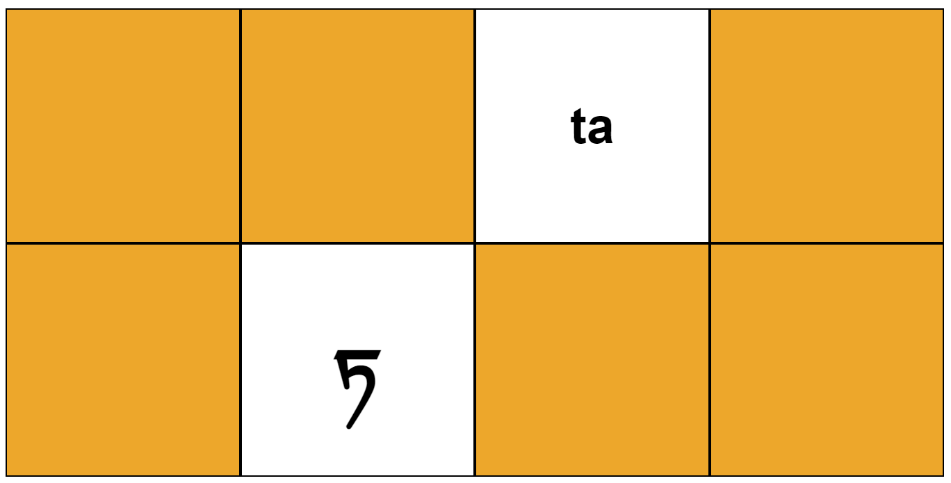 The tibetan alphabet is organized in 4 columns and 7 rows. The first 5 rows in the first 3 colums follow a strict pattern. You'll learn the first 15 lettern in the first lesson.